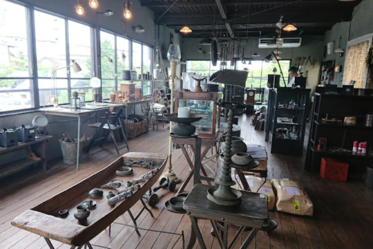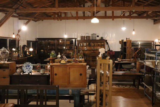 昔布団屋だった古い建物を再利用した場所で、広い倉庫に並んだ様々な古道具をゆっくりと見る事ができます。