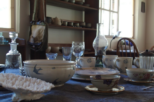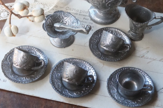 テーブルウェアを中心に、リビングを彩る古いモノたちが集められています。
