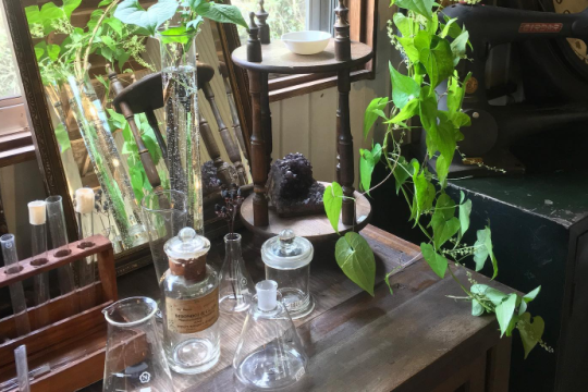 オーナーが周辺から摘んできた植物が飾られていて美しく、古道具の良さを改めて教えてもらいました。