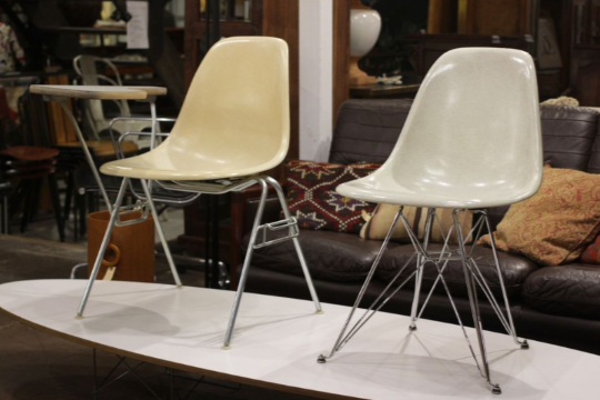 イームズのシェルチェアもありました。サイドテーブル付のデザインはなかなか珍しいですよね。ドリンクを置いてもいいですし、書籍やタブレットを置くなど、なにかと便利な代物です。