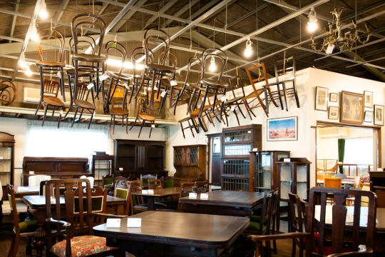 足を踏み入れると、積み重ねるようにして、アンティークやヴィンテージの家具や雑貨がずらりと並んでいます。