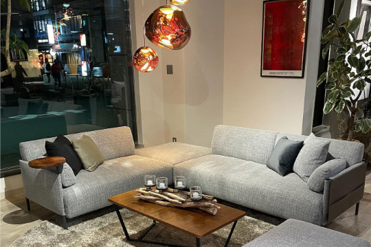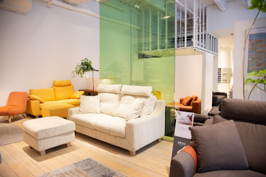 地下鉄四ツ橋駅5番出口を出てすぐのザ・メトロタワー2階に、「NOYES」のショールームがあります。こちらのショールームは、ベビーカーそのままで入れるエレベーターやキッズルームなどを完備しているので、小さなお子さんが一緒でも安心してゆっくりソファを見られますよ。