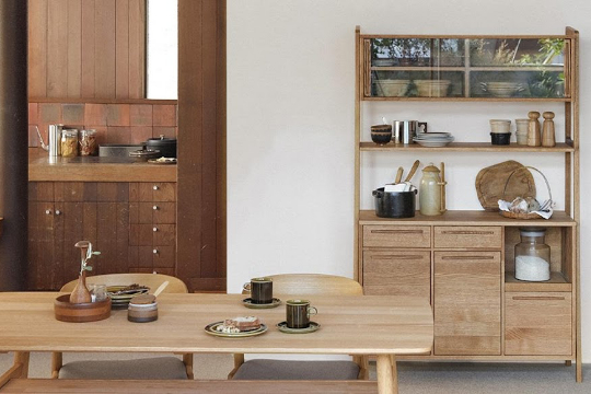 作り手の温度を感じるような「MOMO natural」の家具たちは、私たちの身近な幸せでありたいというブランドの願いが反映されているよう。木目は滑らかに磨かれ、優しい肌触りが心地良いものばかりです。