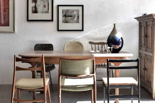店頭の商品は、全てメンテナンス済み。アンティーク初心者でも、安心して使用できるのが嬉しいですね。アンティーク家具はダイニングアイテムがメイン。レトロな食器棚やテーブル、ダイニングチェアなど、実生活で活躍してくれること間違いなしです。