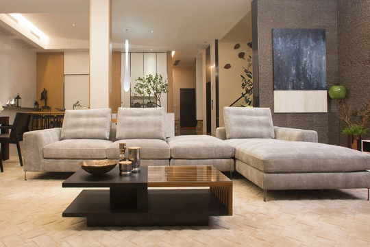 高級感でいっぱいの2人掛けシートは、同コレクション「BOOTS」シリーズのもの。いまなお愛され続ける定番商品です。