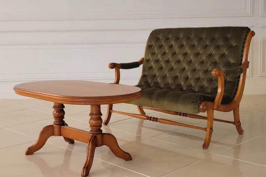 クラシカルな雰囲気を放つ張地の加工と、曲線的なデザインのフレームは、時代が変わっても色あせませんね。