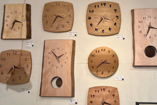 家具のほか、インテリア雑貨も豊富ですよ。人気商品の一つでもある、一枚板で作られた壁掛け時計や額絵、シェードランプなどたくさんあります!