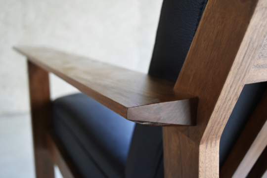 一見シンプルな北欧風のデザインに見えるアームチェアも、横から見ると心地よい形に加工されています。独自のデザイン性を垣間見ることができるのも葉山家具ならでは。