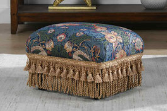 ウィリアムモリスのコレクションの一つ「Strawberry Thief(イチゴ泥棒)」シリーズのフットスツール。小鳥と植物の絵柄がとっても愛らしいデザインですよね。