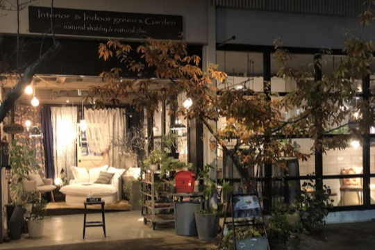 シャビーテイストなインテリアが特徴的なショップです。熊本市中心部より少し南に行ったところにあります。