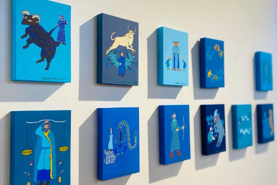 星座をモチーフにした可愛らしいアートパネルは、仙台で活躍する作家・宮島えりかさんの作品。