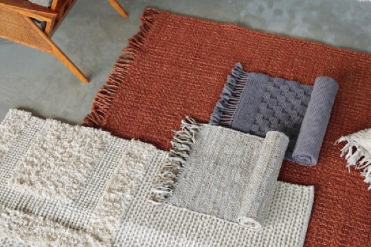 また、カーペットやラグ関連も豊富で、特に「ギャッペ」と呼ばれる手織りのラグは必見。
