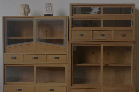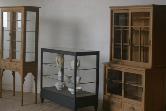 食器棚や本棚、ケビントやガラスケースなどの日本の古家具、古家具をメインに扱っています。