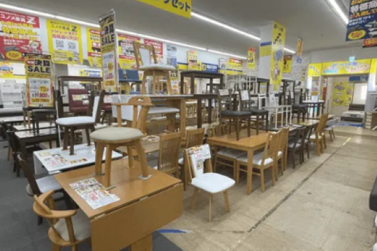 店頭に並ぶのは、展示品だった商品や少しキズがついてしまった家具、メーカーの在庫品など、実にさまざま。