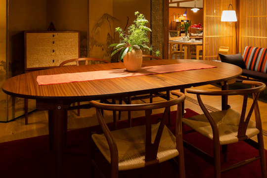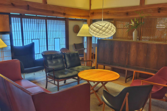 時代に縛られないデザインが全面に発揮されている北欧家具と、日本らしい寛容さのある古民家が絶妙にマッチしていて、素敵な空間になっています。