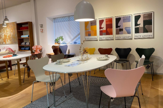 家具のショップでは、カールハンセンやモブラーなどの北欧の名作家具が展示・販売されていて、ゆったりとした雰囲気の中で北欧家具の奥深さを味わえます。