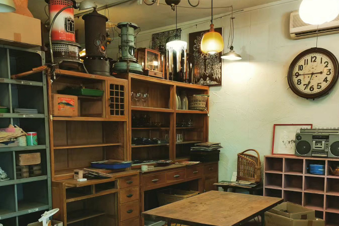 国内外からの仕入れや買い取りで集まった古いモノが集まるショップで、中には古道具をリメイクした家具も扱っています。