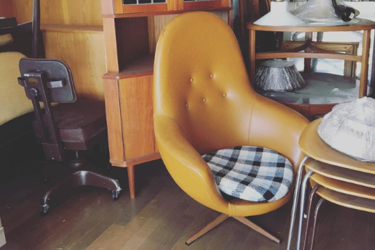 そして、注目は「EAMES」のヴィンテージ家具です。オーナー自身「chair-chairといえば、イームズ」と語っている通り、たくさんの「EAMES」の椅子が並んでいます。プラスチック素材のもの、布張りのもの、カラーバリエーションも豊富で他では見つからなかった椅子がこの店にならあるかもしれません。