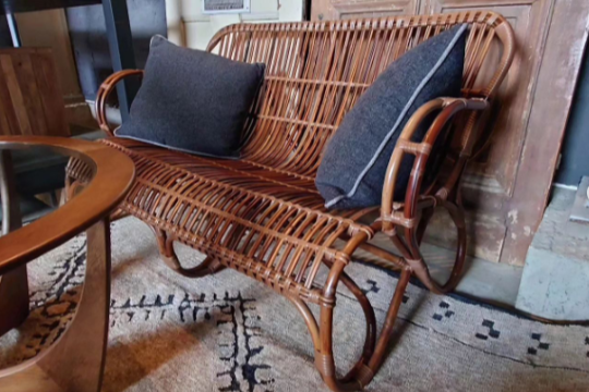 日本では「籐(とう)」と呼ばれることでお馴染み、ラタンで作られたベンチ。