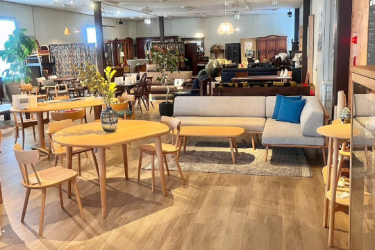 フレッシュな木の香りが漂う店内にこだわりのチョイスで集められた家具がずらっと並び、「あ、良いモノがある!」と直感します。
