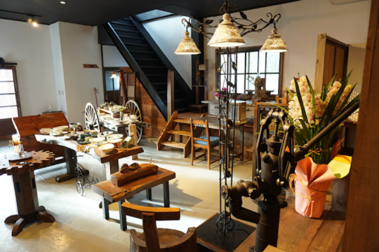 鈍い金属が魅力のアンティークミシン脚や、糸車の一部を再利用したランプ、堂々した風格の和箪笥など見応えも抜群です!