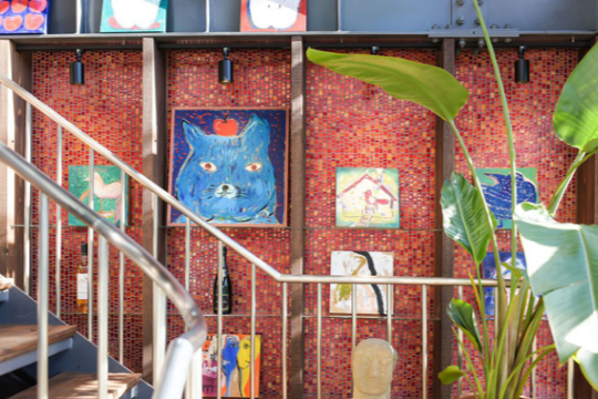 屋上まで続くショールームは、ポップでカラフルな色使いや、タイルやガラス、木材など、素材の風合いを活かしたインテリアが広がり、まるで絵本の中の世界に飛び込んだかのよう。