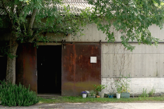 一見すると小さな工場か倉庫のように見える寂び感のある「枯白」の工房は、集落の細い道を奥まで進んだ先にあります。