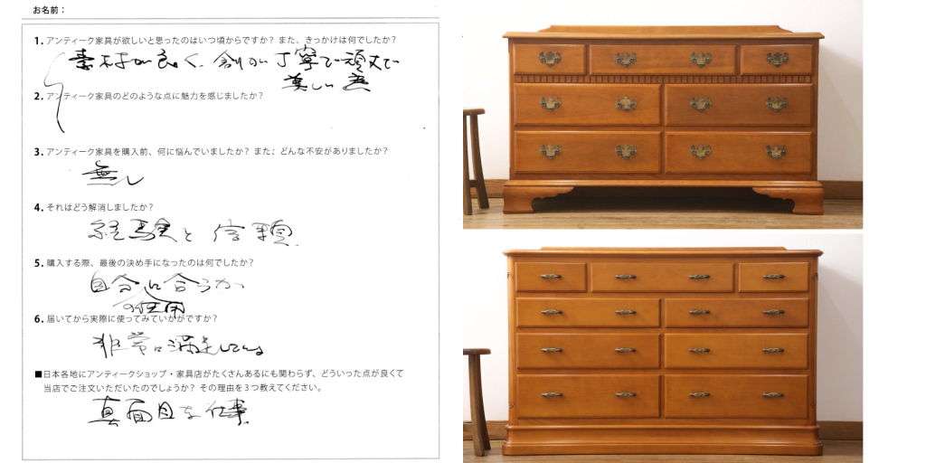 今回ご購入された横浜ダニエルのチェスト、末永くご愛用いただけますと幸いです。ご縁を賜りましたこと、当店一同改めてお礼申し上げます。