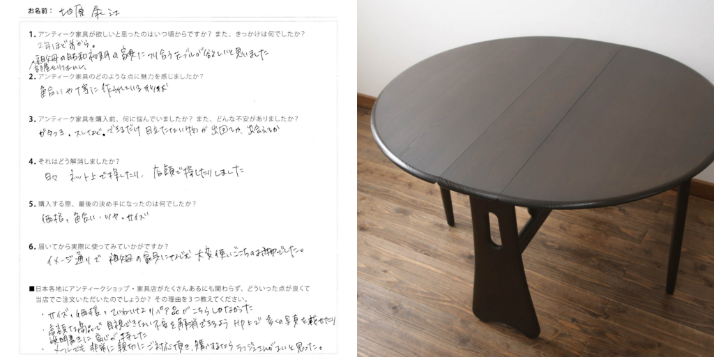 2年ほど前から。祖父母の部屋をリフォームし、昭和初期の家具に釣り合うテーブルがほしいと思いました。