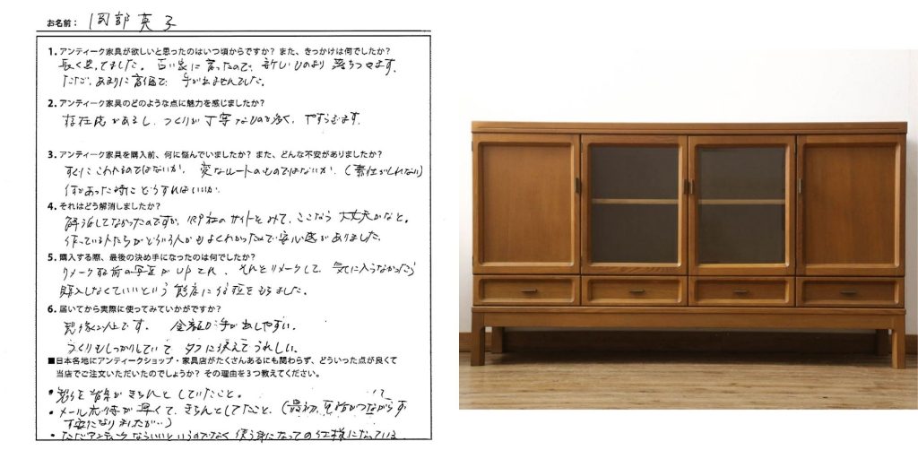 岡部様、この度は当店をご利用いただきまして、誠にありがとうございました。選び抜いたサイドボード、末永くご愛用くださいませ。