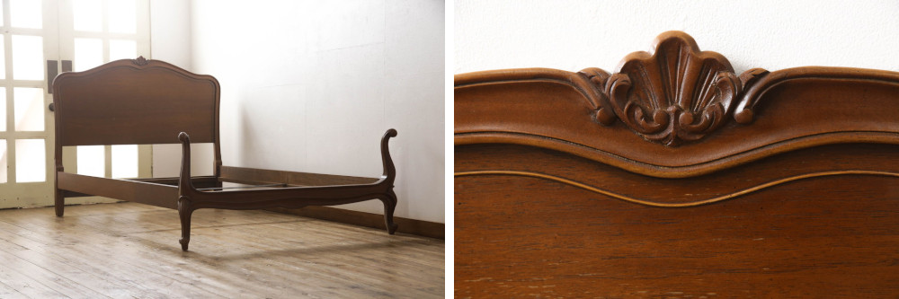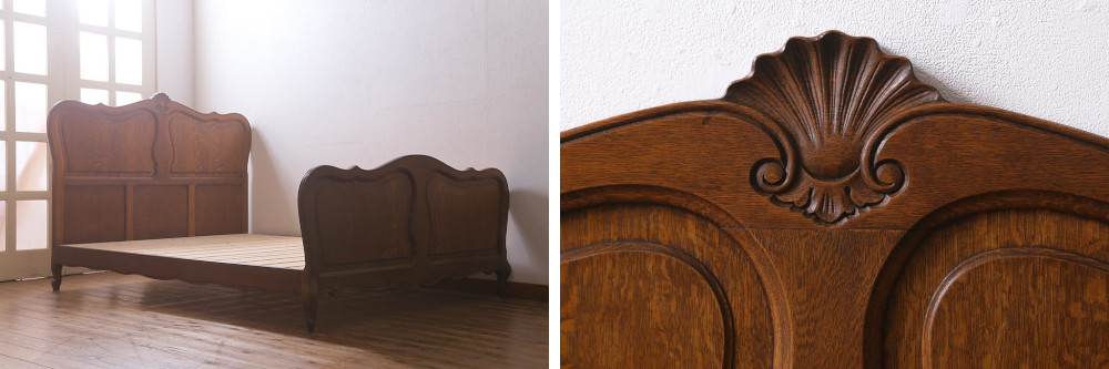 アンティークのベッドフレームは種類が豊富で、様々なデザイン、生産国から好みの1台を選べるのが嬉しいポイントです。また、現在ではほとんど流通されていないレアな木材を使用していることもあります。前オーナーの丁寧な取り扱いを経て、他では見つけられない唯一無二のベッドフレームを探し出すことができますよ。