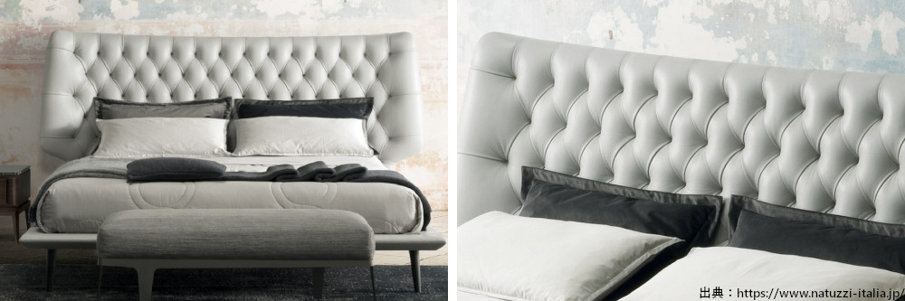 ナツッジイタリアもまた、革へのこだわりをもつ家具ブランドです。ベッドフレームにも惜しみなく革を採用しており、革の良さを堪能できる名作が揃っています。また、イタリア製であることに情熱を注いでいるブランドでもあり、100%イタリア製を貫いています。