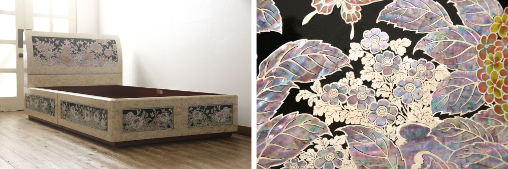 ⇒ラフジュ工房の螺鈿家具のベッドはこちら