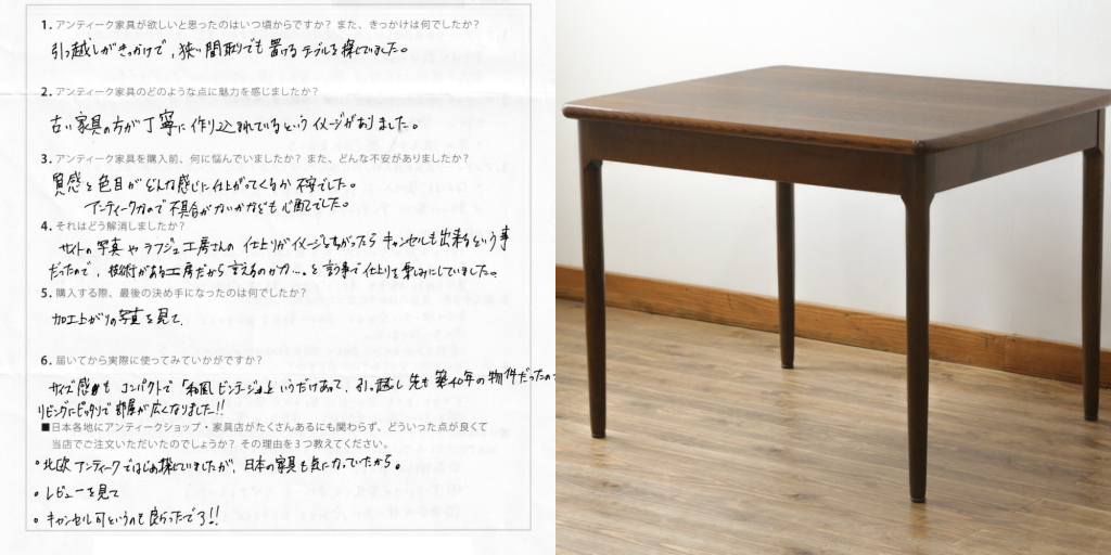 1.北欧アンティークではじめ探していましたが、日本の家具も気になっていたから。