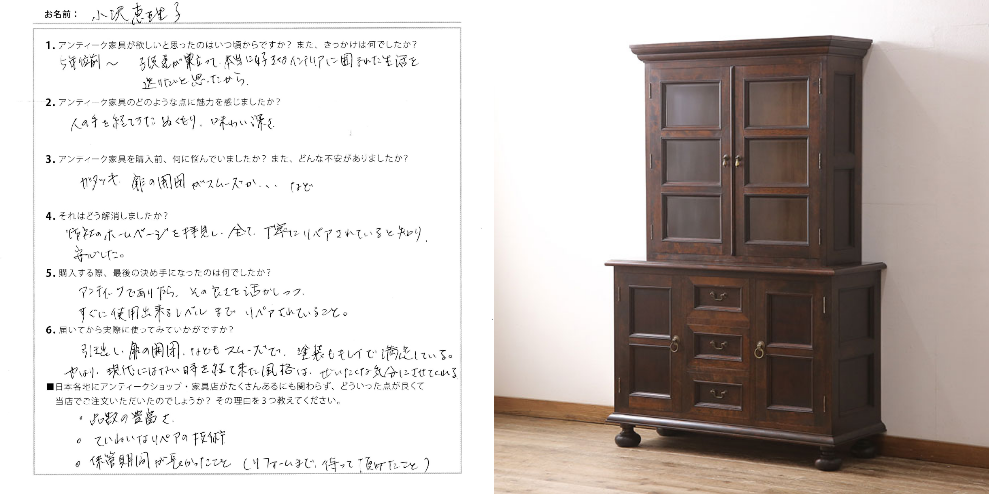 小沢様、この度は当店にて松本民芸家具の食器棚をご購入いただき、誠にありがとうございました。