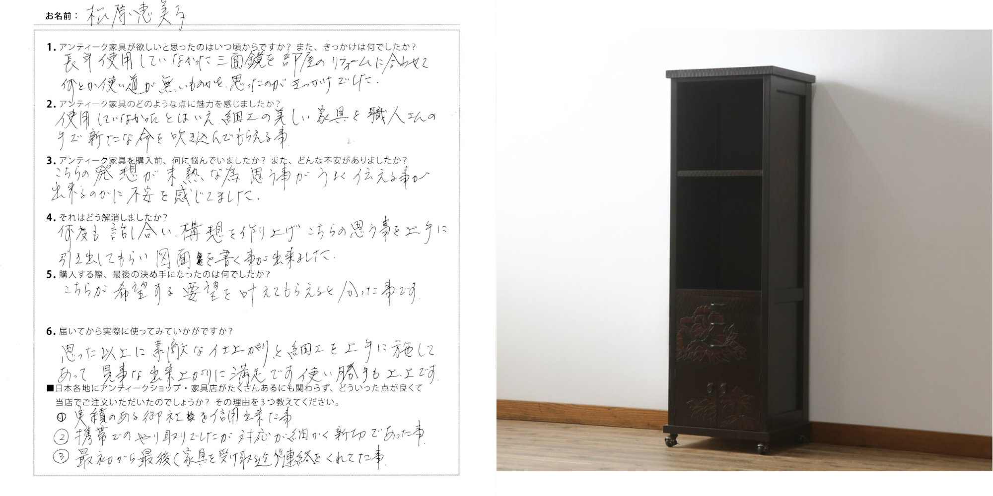 松原様、この度は大切なお手持ちの鏡台のリメイクをご依頼いただき、誠にありがとうございました。