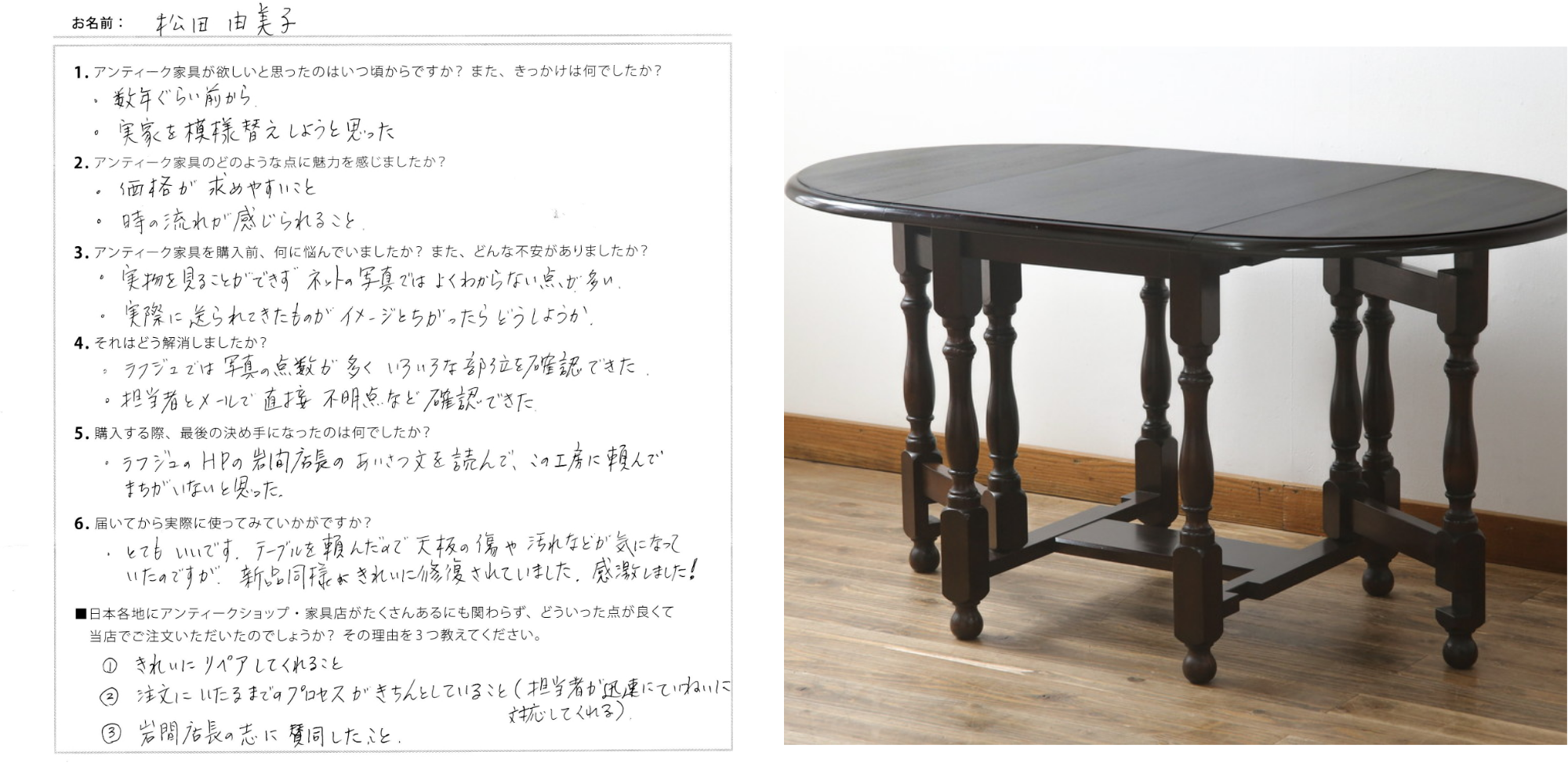 松田様、この度は当店にて松本民芸家具のバタフライテーブルをご購入いただき、誠にありがとうございました。