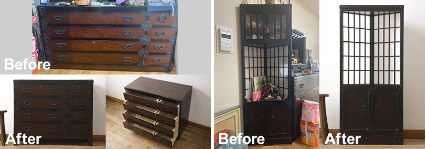 今回はたんすとコーナーキャビネットのリメイクをお願いしました。