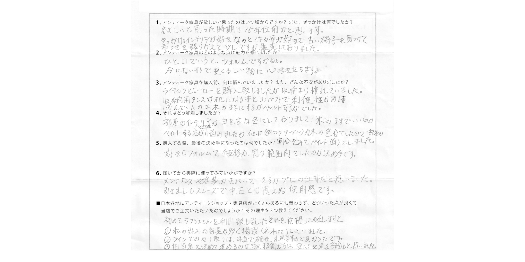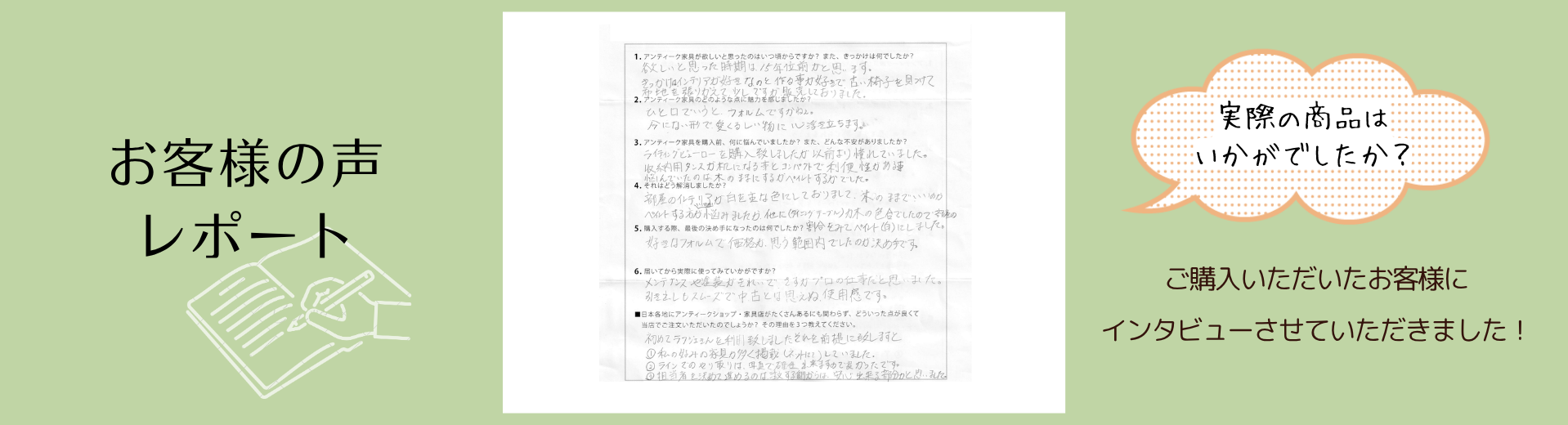 以前よりインテリアにご興味を持たれ、ご自身で椅子のリメイクも手がけておられるほど、家具を熟知し愛しておられるお客様に、当店の商品をお選びいただきましたこと、大変嬉しく思っております!