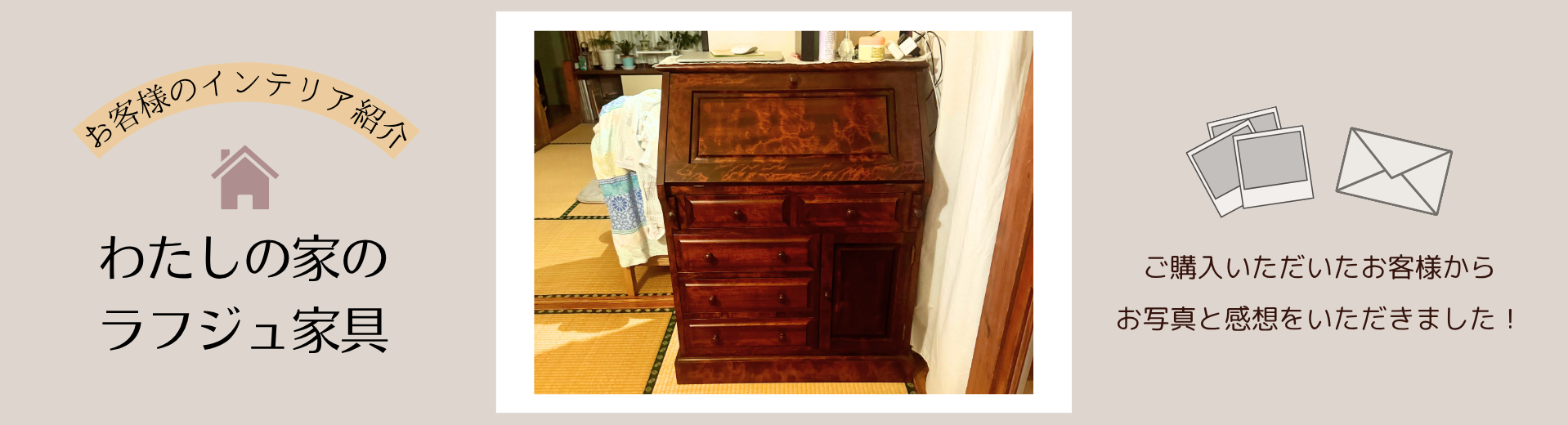 古民家風の和室にぴったりの、コンパクトで落ち着いたライティングビューローをお探しだったとのこと。まさにお客様の理想に添えるお品をお届けできましたこと、大変光栄です!
