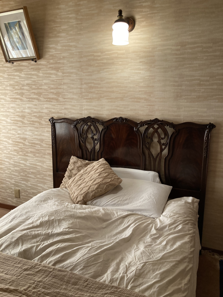 クラシカルで上品な寝室のメインと言えるベッドに、当店で扱うアイテムをお迎えいただけたこと、とても嬉しく思います。