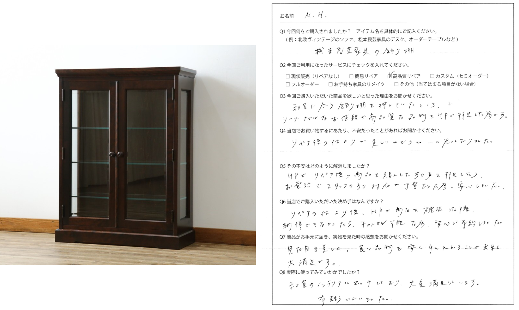 和室に合わせる飾り棚として当店の商品をお選びいただき、とても嬉しくアンケートを拝見しました!