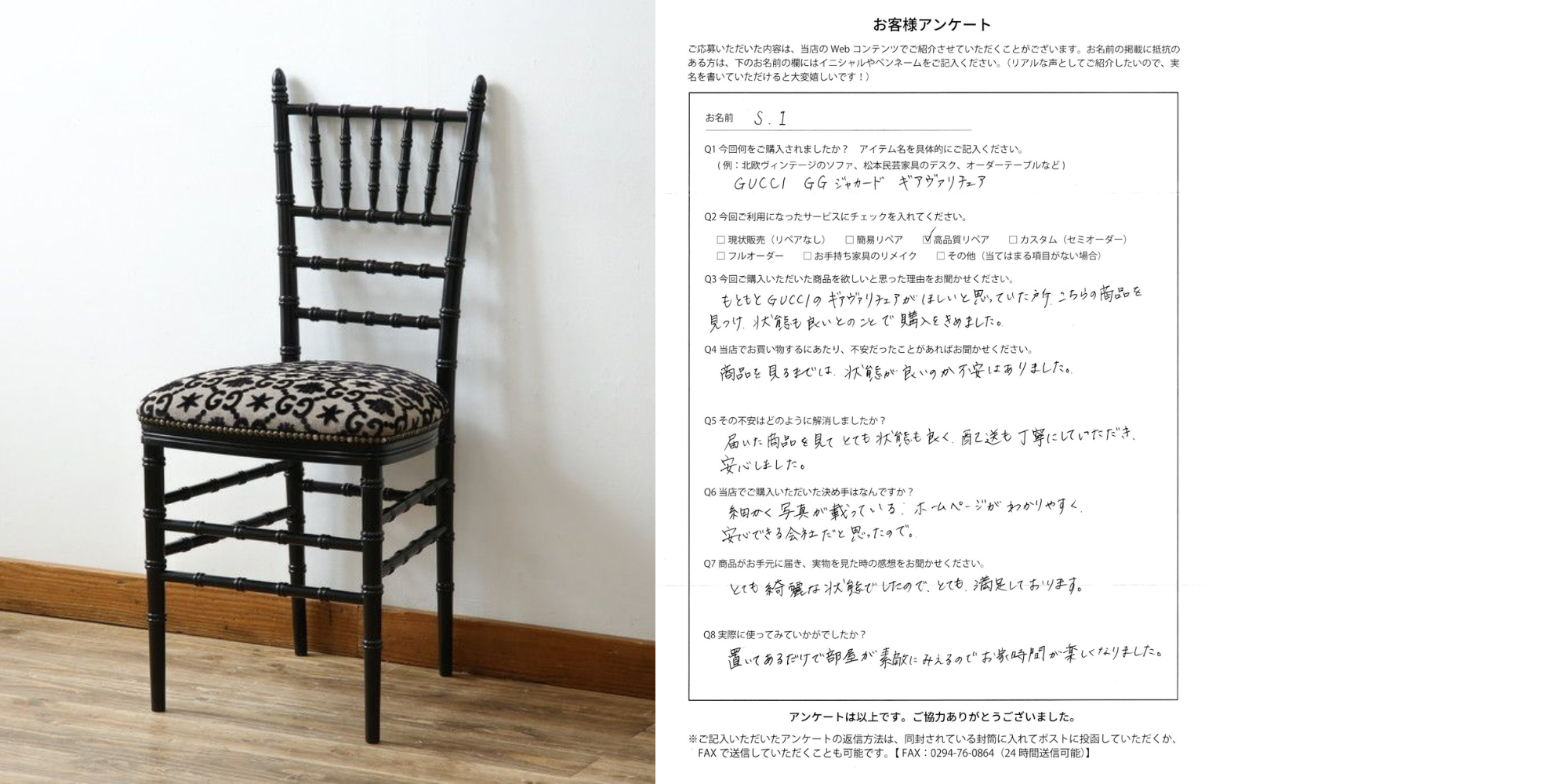 以前から気になっていらしたチェアとのこと、状態の良さにもご満足いただけて安心いたしました。