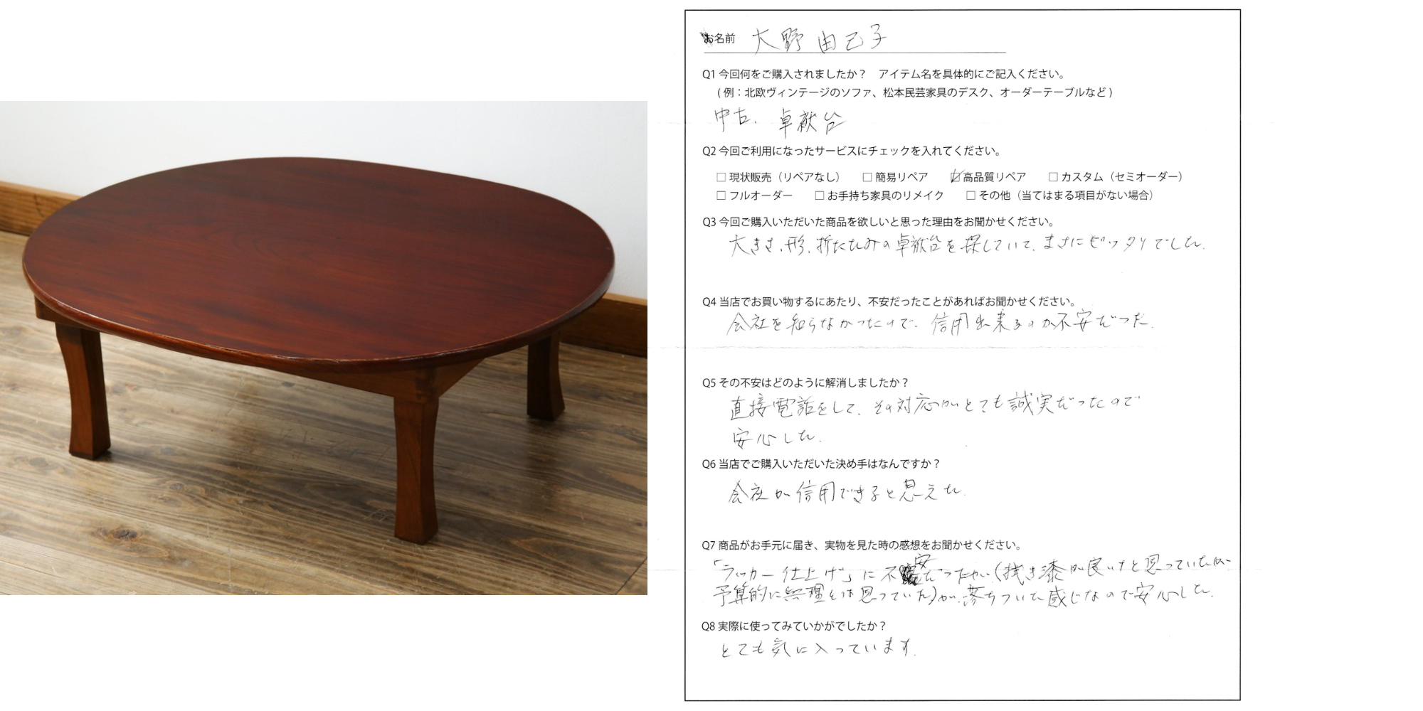 このたびは和製アンティークのちゃぶ台をご購入いただき、またアンケートのご回答をお寄せくださり誠にありがとうございます。