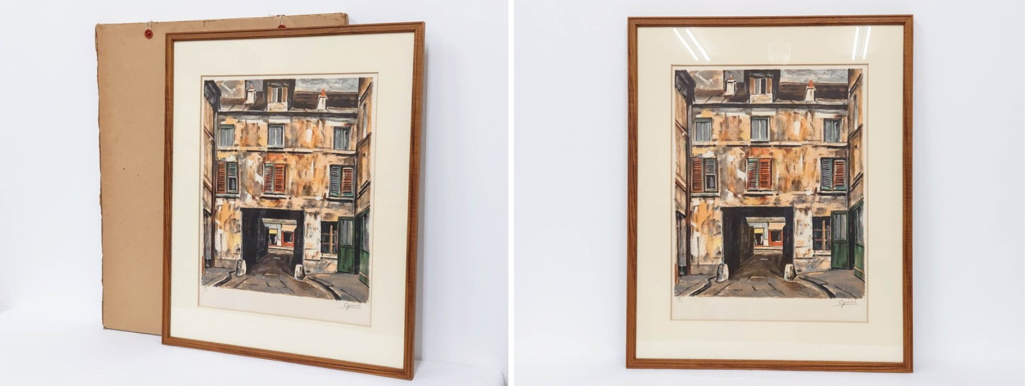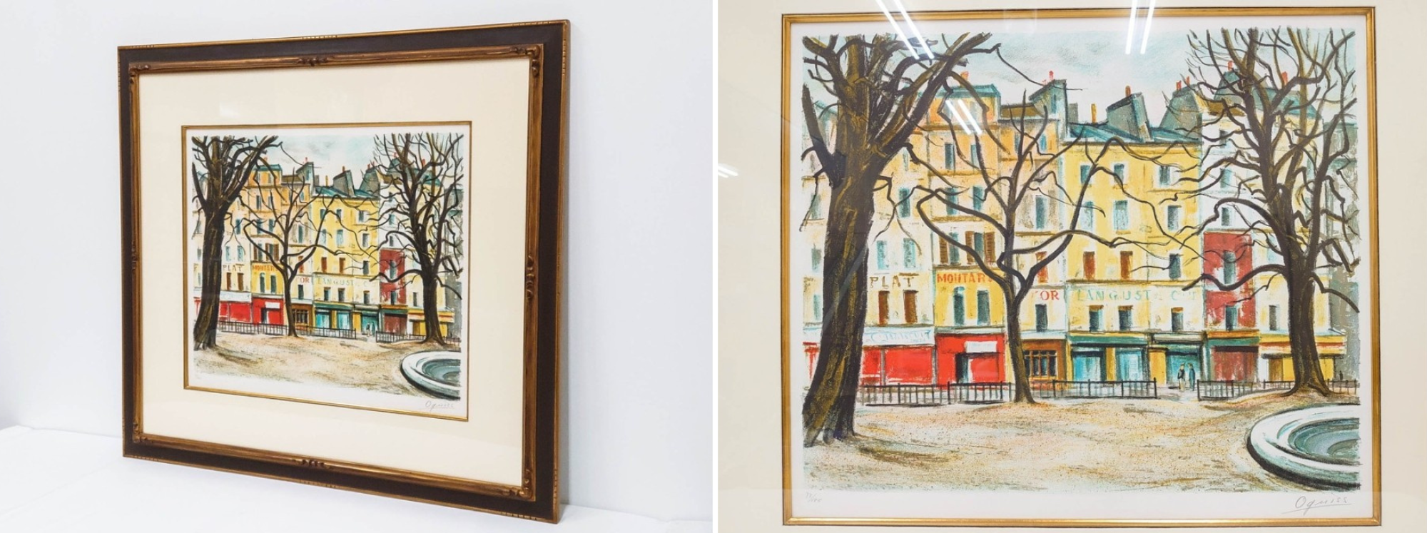 最初の一枚との出会いから、再び同じ作家の作品をお選びいただけたことを知り、私たちもとても嬉しい気持ちになりました。どちらも荻須高徳ならではの静けさと奥行きを感じさせる作品で、暮らしの中にそっと寄り添いながら、眺めるたびに心を豊かにしてくれる存在だと思います。