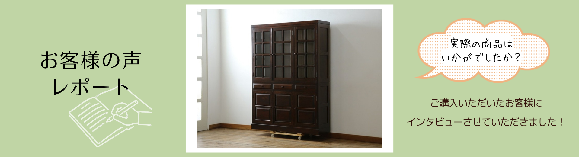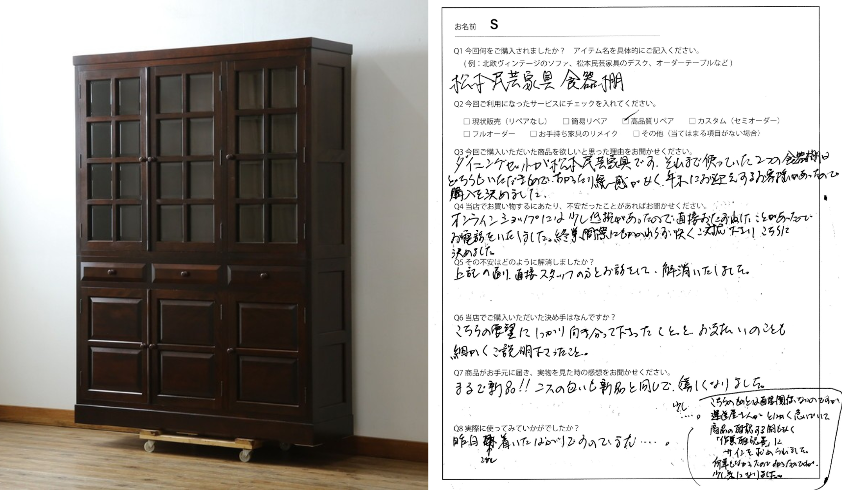 このたびは、松本民芸家具の食器棚をご購入いただき、またご感想をお寄せくださり誠にありがとうございます。