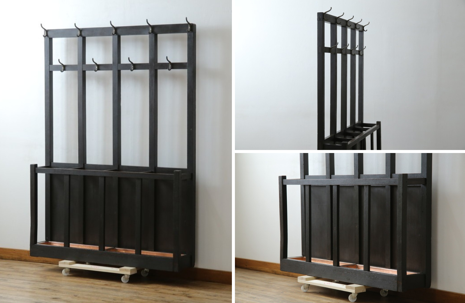 お子さまのお部屋で長く使える家具としてアンティークを探してくださったとのこと、とても嬉しく拝見しました。コートや小物をさっと引っ掛けたり立て掛けたりできる家具は、やっぱり便利ですよね…!