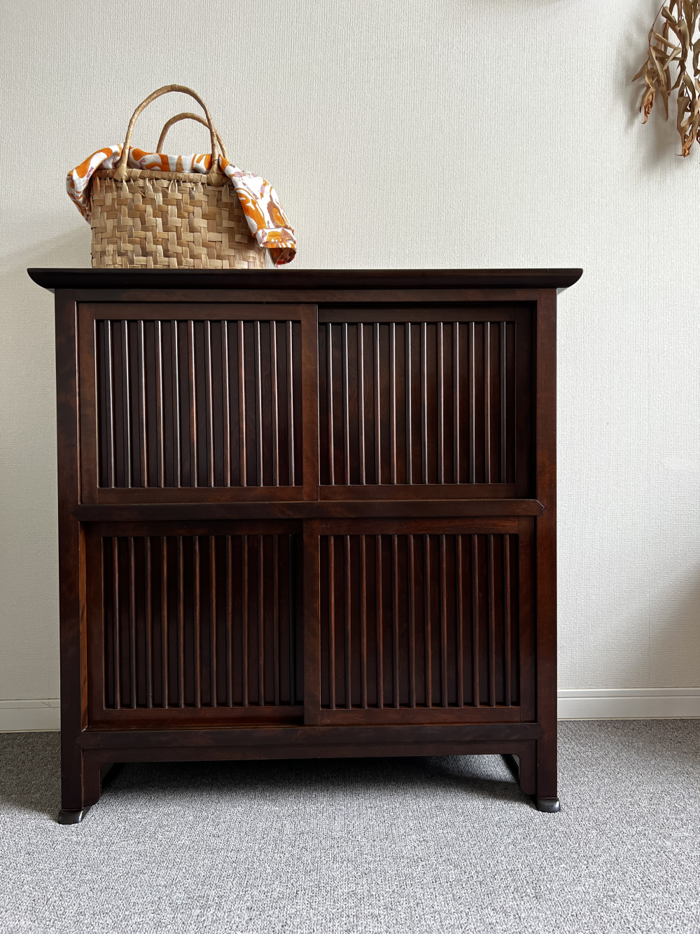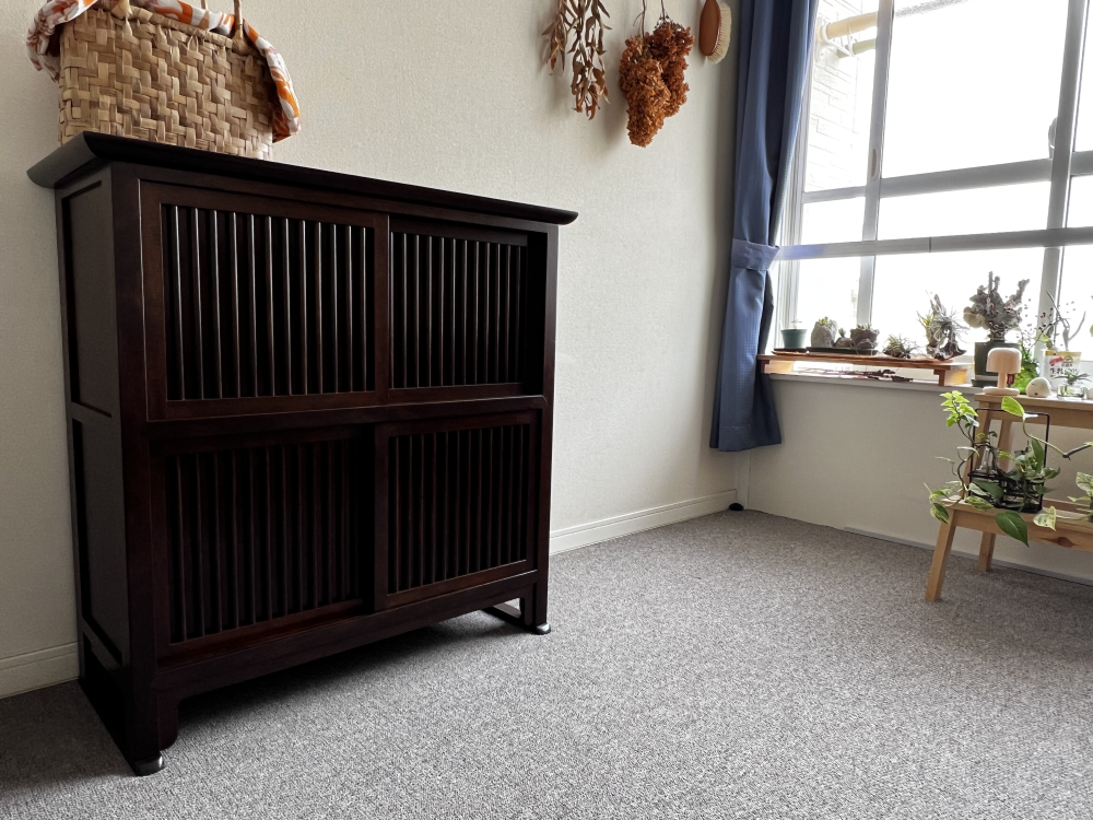 舞良茶タンスを偶然見かけて気に入ってくださったとのこと、その出会いからお選びいただけたことをとても嬉しく感じております。サイズ感もぴったりだったとのことで、実際の暮らしの中で無理なく取り入れていただけているご様子が伝わってきました。