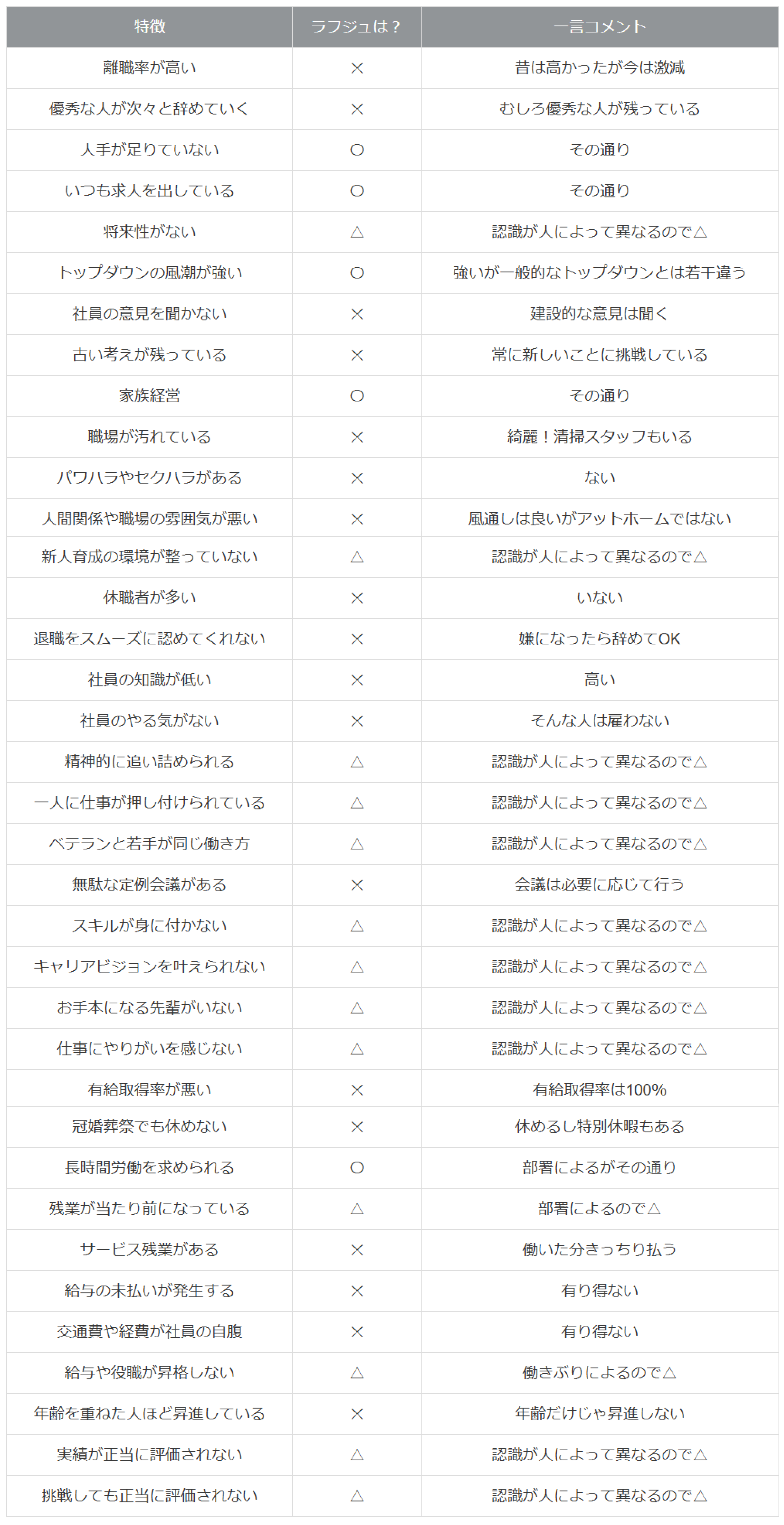 やはり、このリストを指針とするならば、ラフジュ工房は「入らない方が良い会社」ということになりそうです。