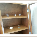 先日はありがとうございました。サイズぴったりでした! キッチンには地味な色の家具しかなかったので、この食器棚があるだけで気分が明るくなります! 古い家なのでピカピカの家具よりリメイクされた家具のほうが……
